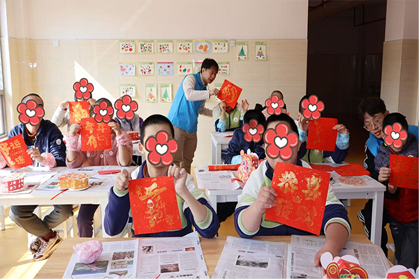 中心早早组织工作人员将院内各个区域装扮一新:院门口、主干道、树枝上大红灯笼高高挂;大厅内、生活区、楼道里福字、窗花喜气洋洋。为了让孩子们更好地感受传统节日氛围,中心社工及老师组织孩子们参与春节主题手工制作活动,孩子们在老师的指导下制作灯笼、拓印窗花,用创意手工艺品装点自己的家园,表达对新年的美好祝愿,为大院增添了浓浓的年味。