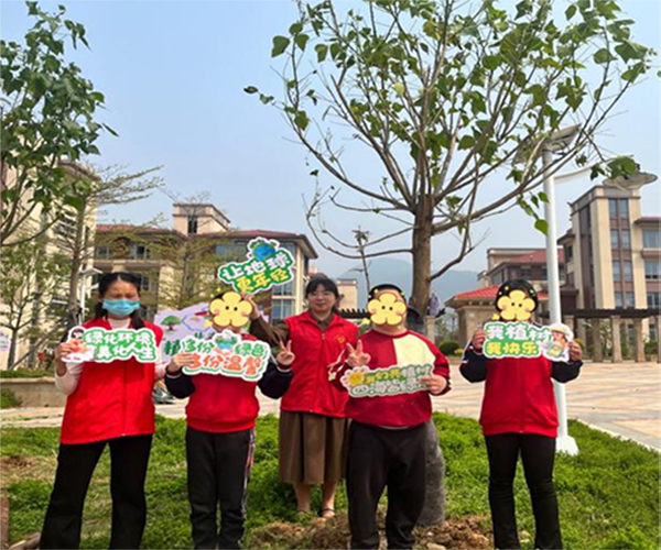 党员们还与孩子们共同为每棵树悬挂标识牌,标注树种名称、捐赠单位及栽种时间等信息,同时写有“一老一小需关爱,一枝一叶总关情”的承诺标语,寓意党员们对“一老一小”群体的长期守护与责任担当,也象征着党和政府、爱心单位对市社会福利中心“一老一小”关爱的永恒见证。